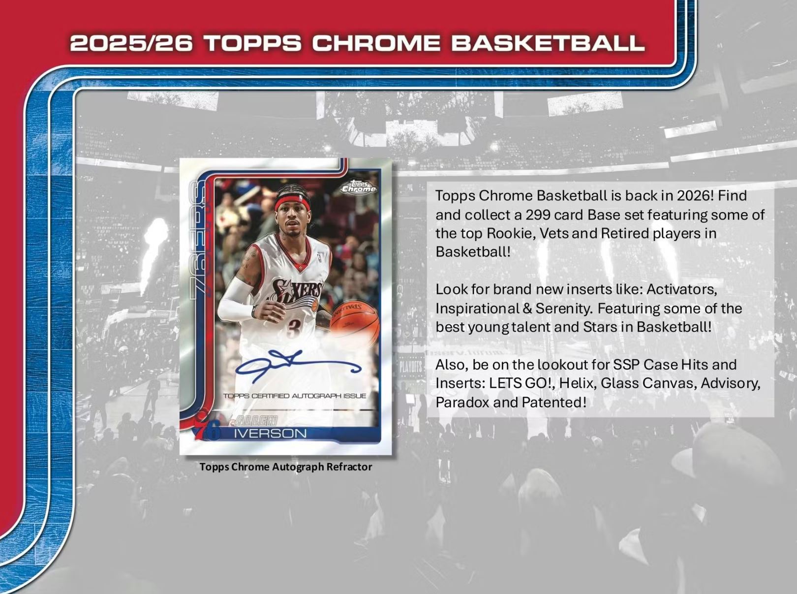 Look for brand new inserts like: Activators, Inspirational & Serenity. Featuring some of the best young talent and Stars in Basketball!