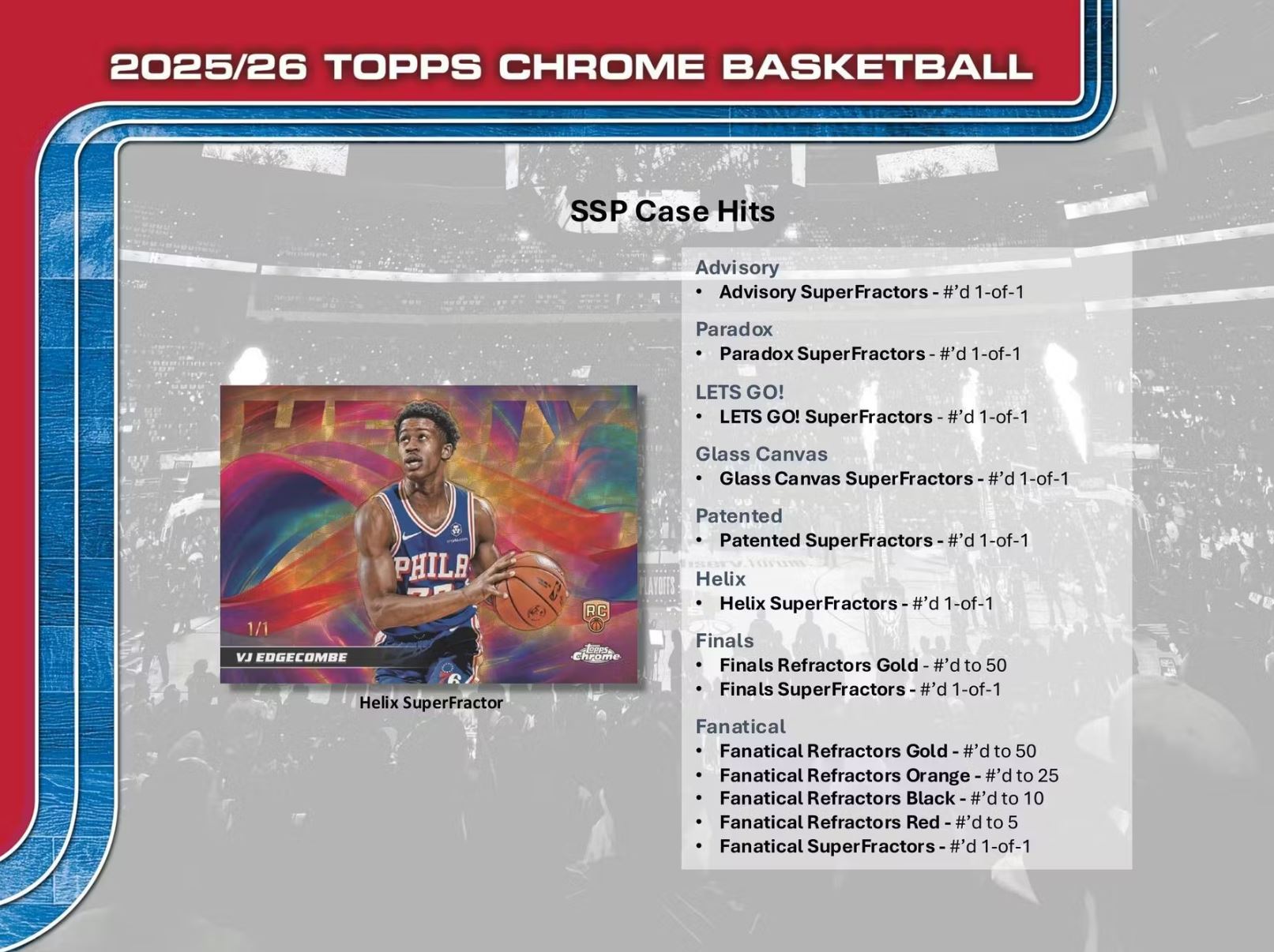 Also, be on the lookout for SSP Case Hits and Inserts: LETS GO!, Helix, Glass Canvas, Advisory, Paradox and Patented!