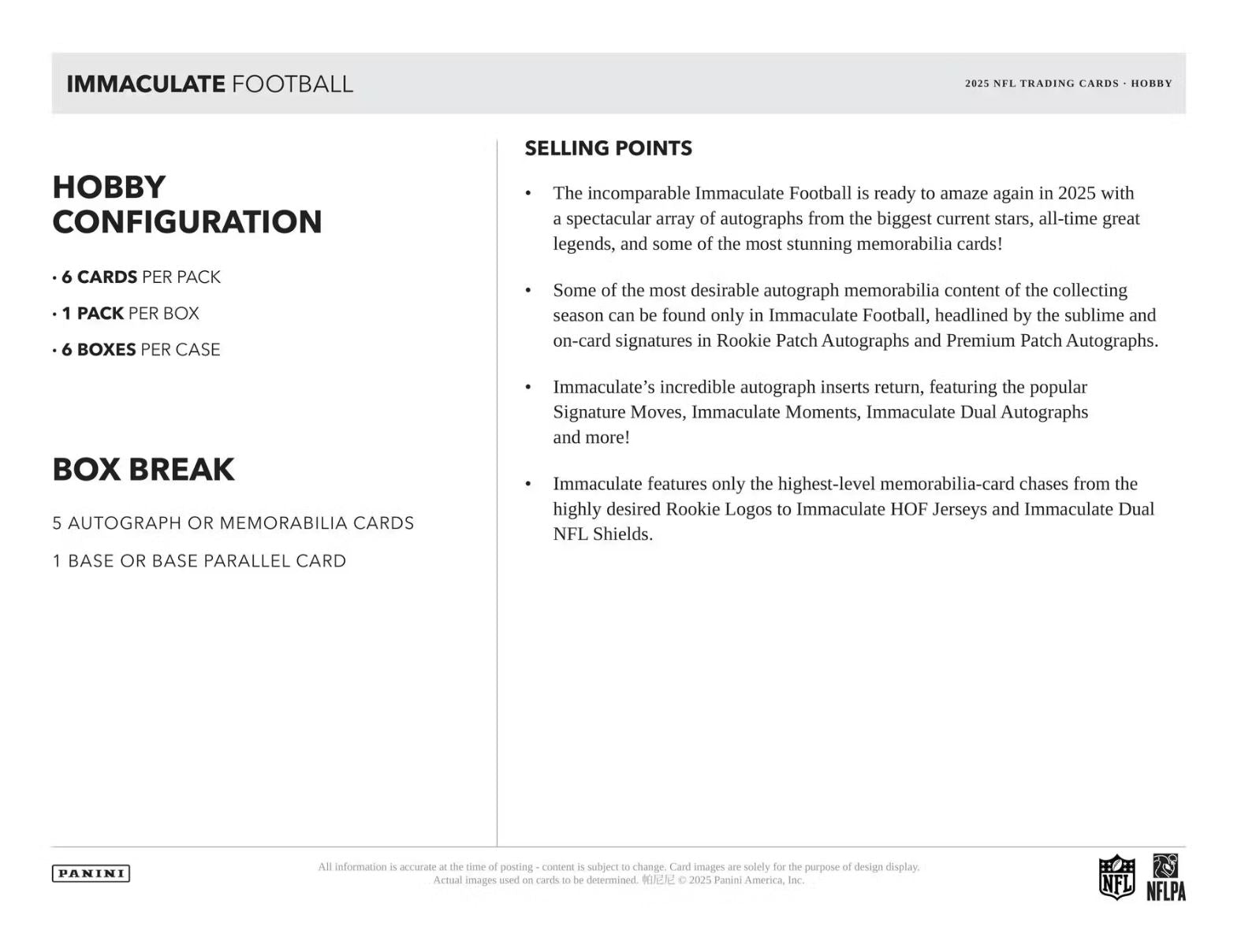 2025 Panini Immaculate Football Hobby Box