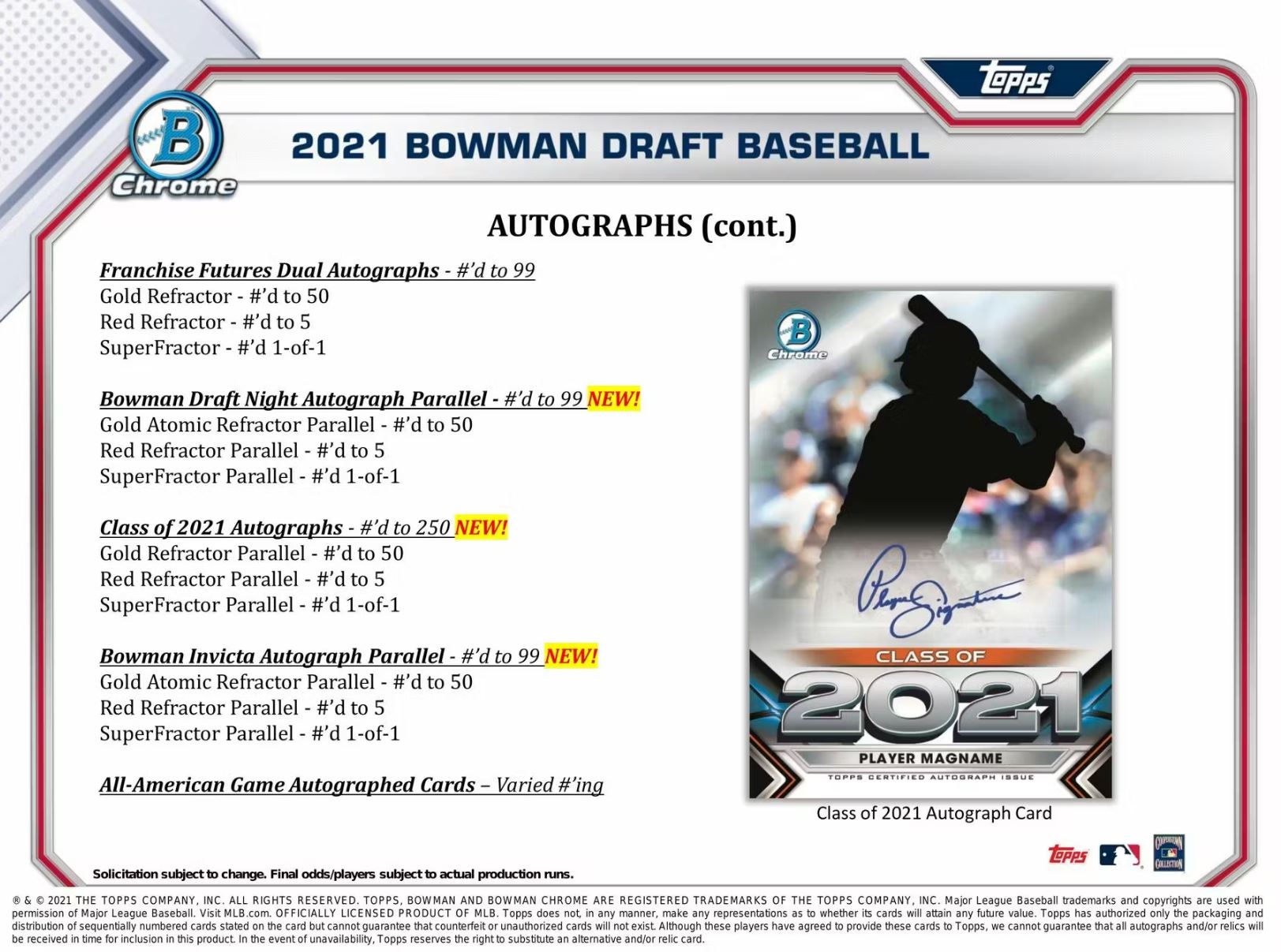 Class of 2021 Autographs - #'d to 250 NEW!:
