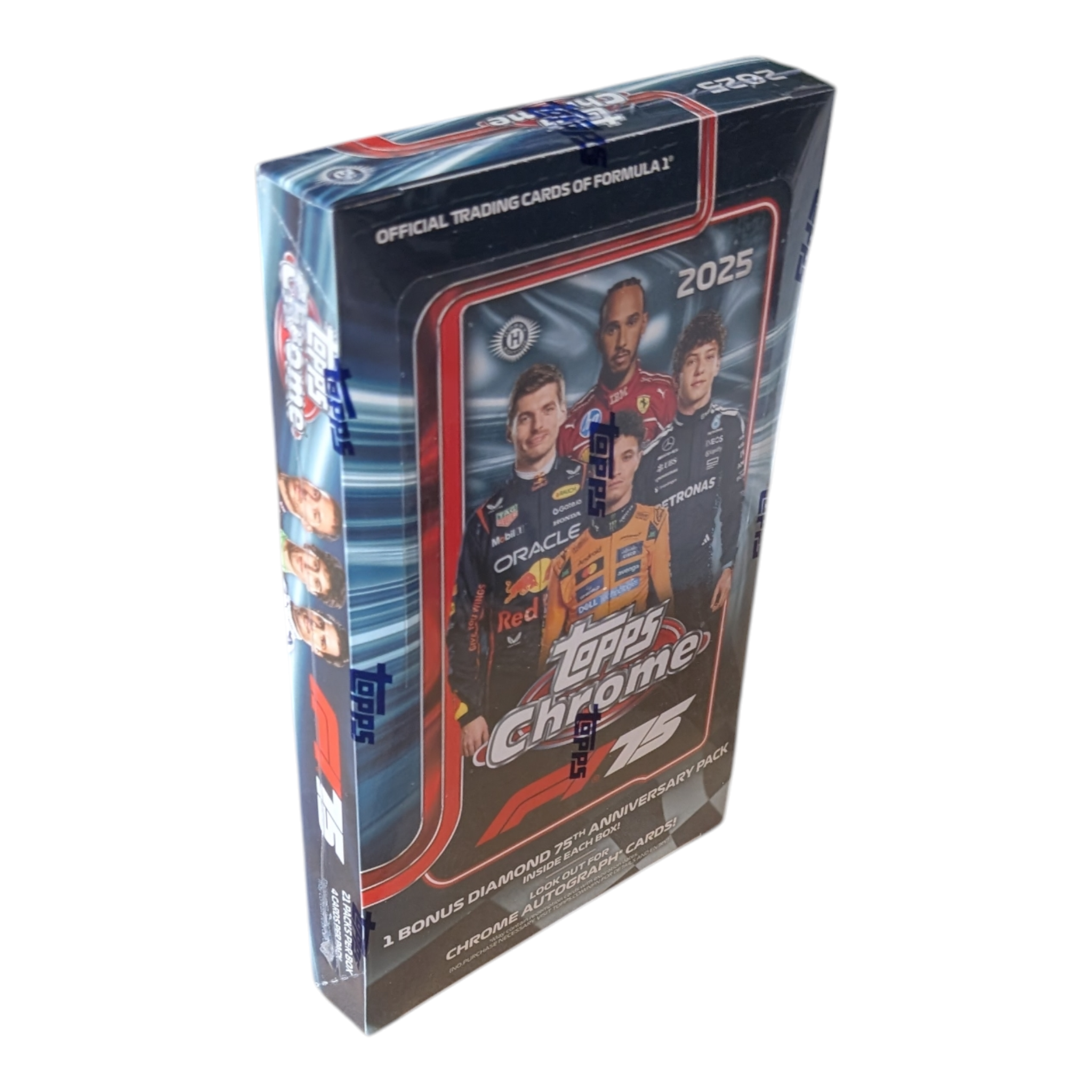 From lights out to the final lap, collect the prestigious 2025 Topps Chrome Formula 1 Hobby cards showcasing the top young talents, superstars, and select legends from Formula 1 Racing!