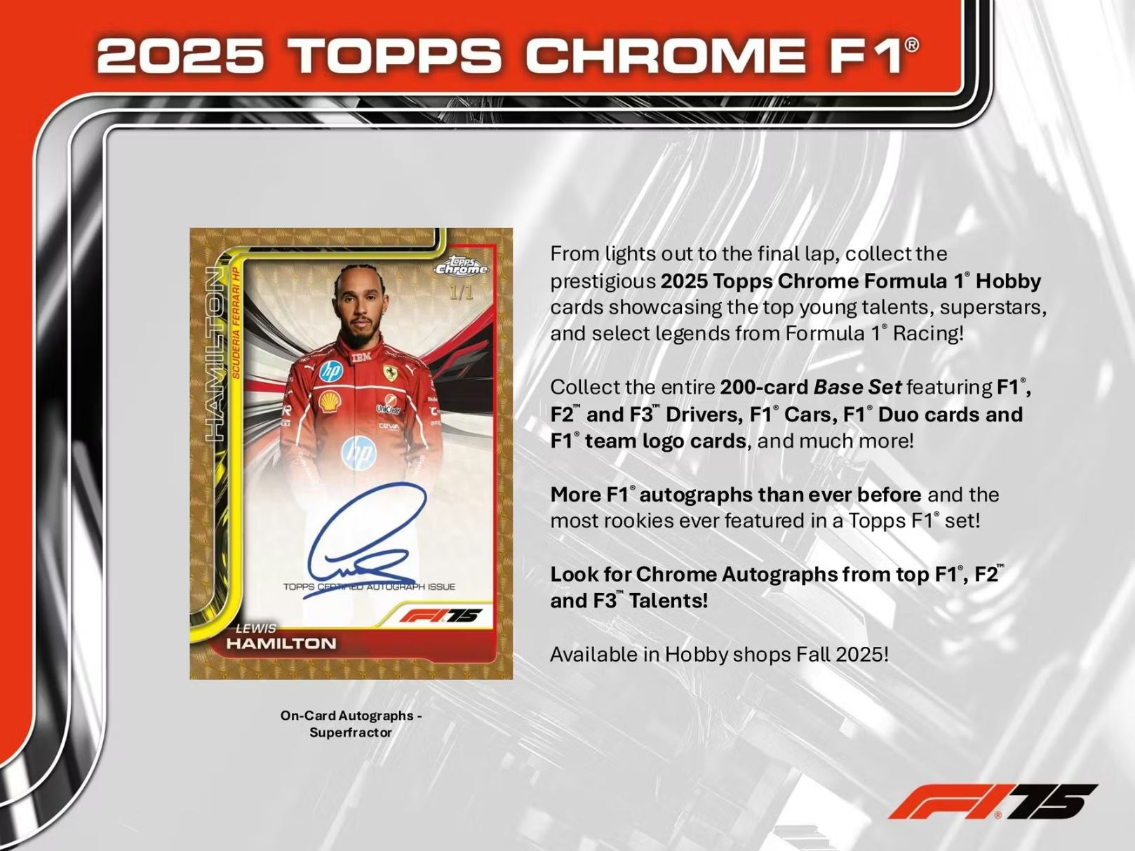 Look for Chrome Autographs from top F1, F2 and F3 Talents!