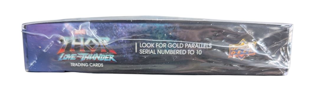 Discover the power of love and thunder in this exciting trading card set - Marvel Studios' Thor Love and Thunder! Collect an 80-card Base Set along with themed insert cards, low numbered parallel cards, acrylic cards, manufactured film cels and talent autograph cards.