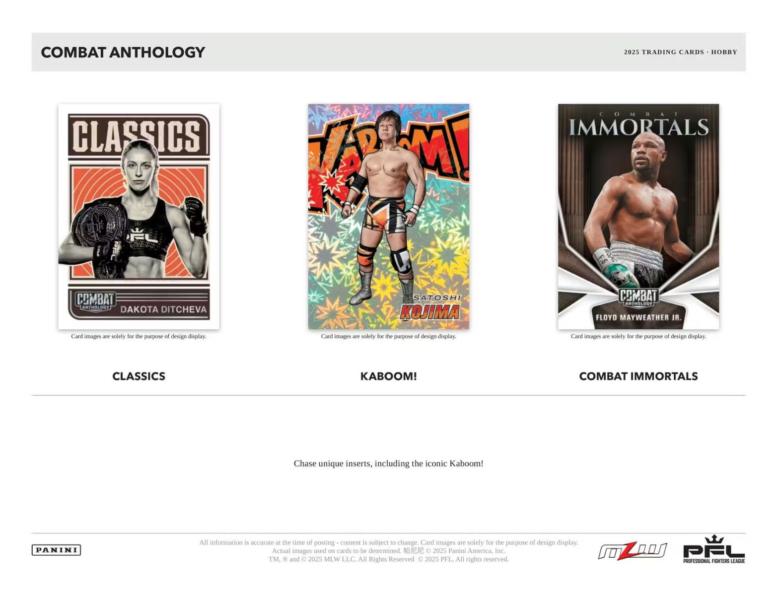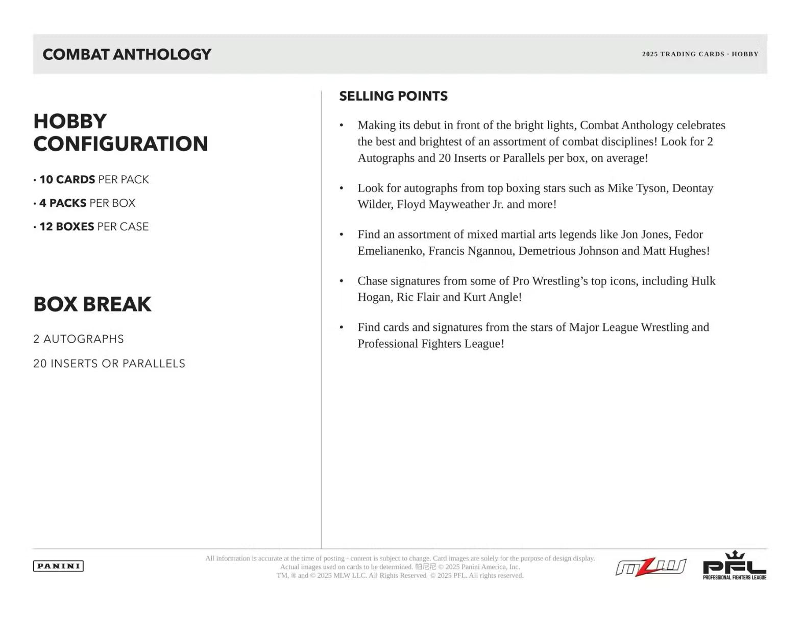 Making its debut in front of the bright lights, Combat Anthology celebrates the best and brightest of an assortment of combat disciplines! Look for 2 Autographs and 20 Inserts or Parallels per box, on average!