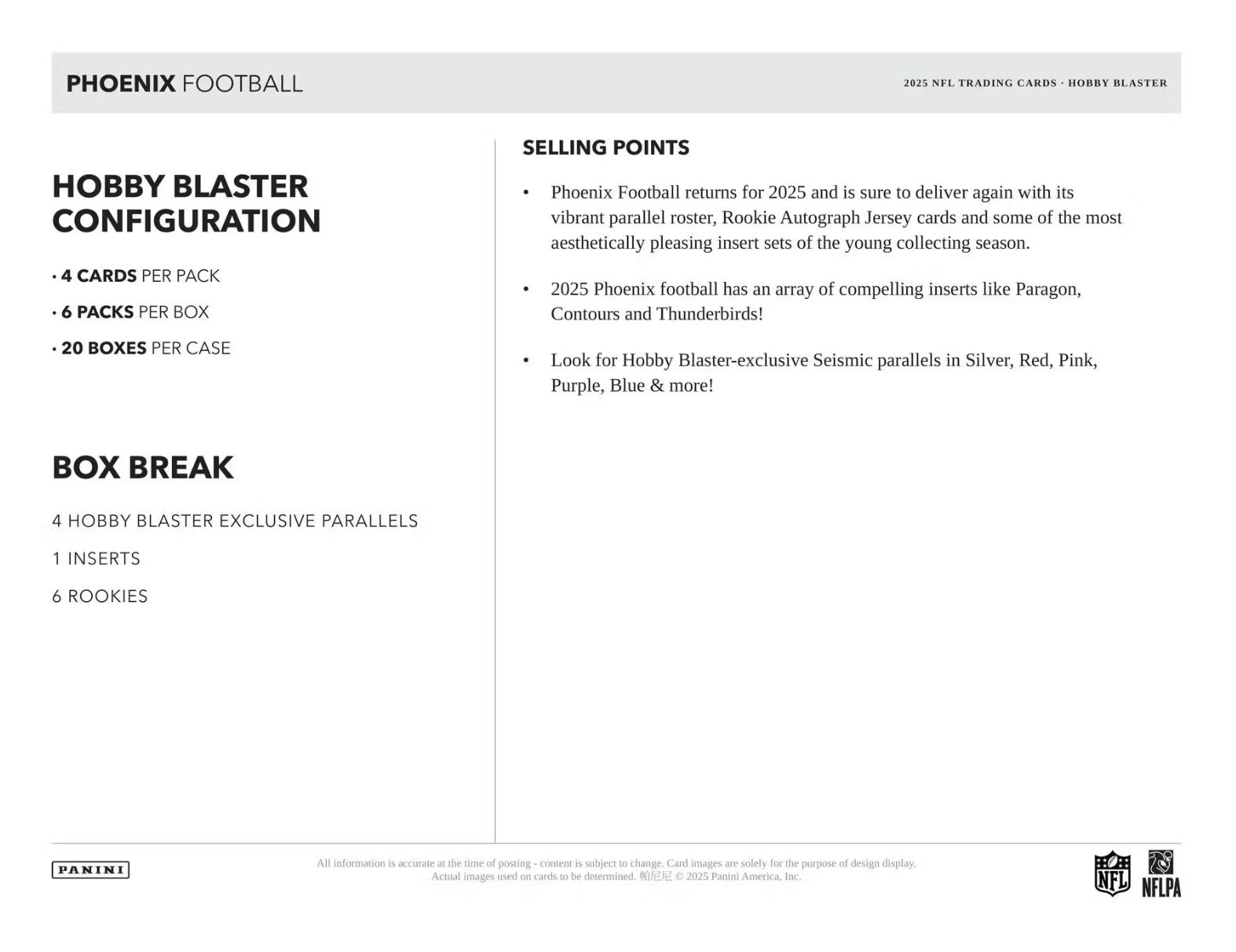 Phoenix Football returns for 2025 and is sure to deliver again with its vibrant parallel roster, Rookie Autograph Jersey cards and some of the most aesthetically pleasing insert sets of the young collecting season.