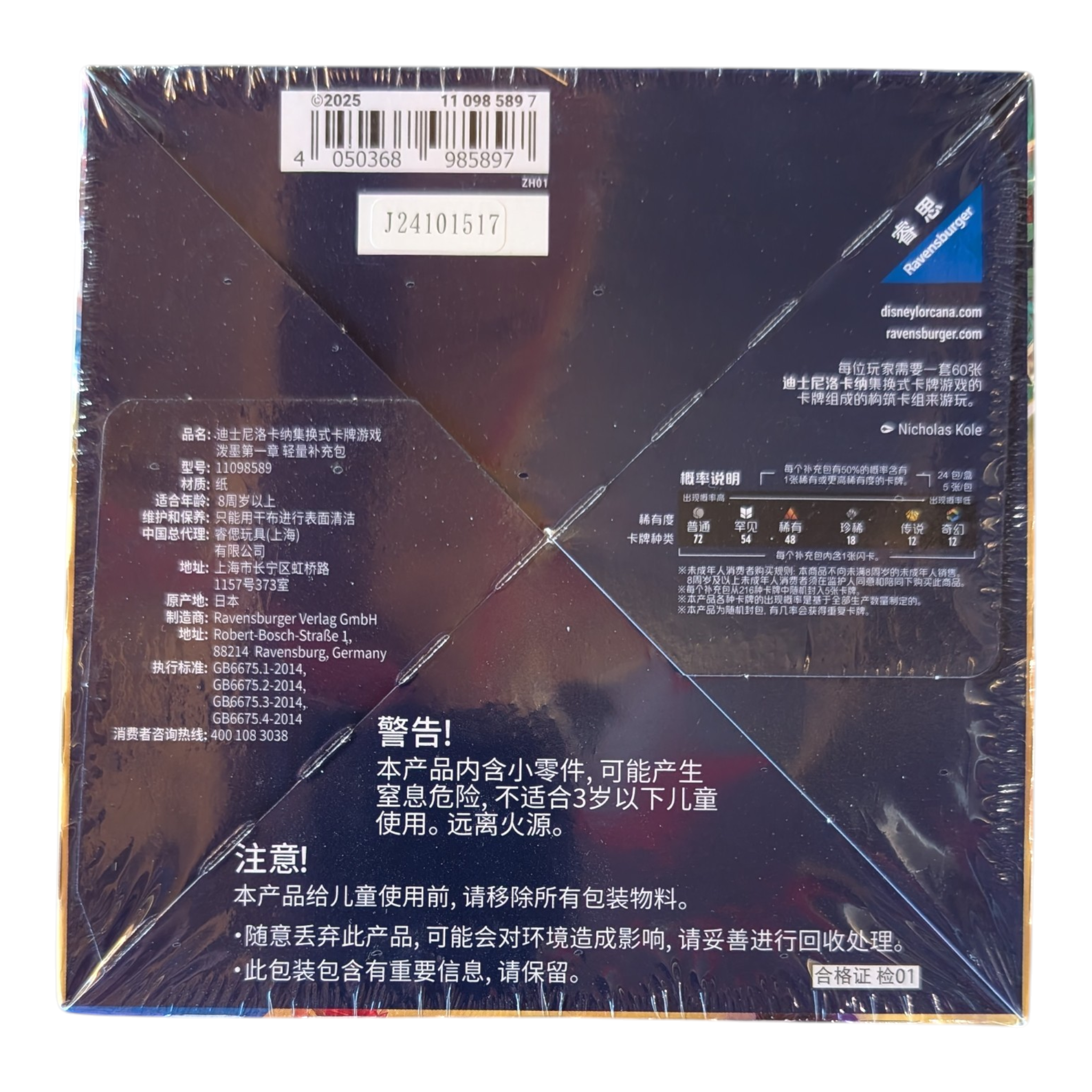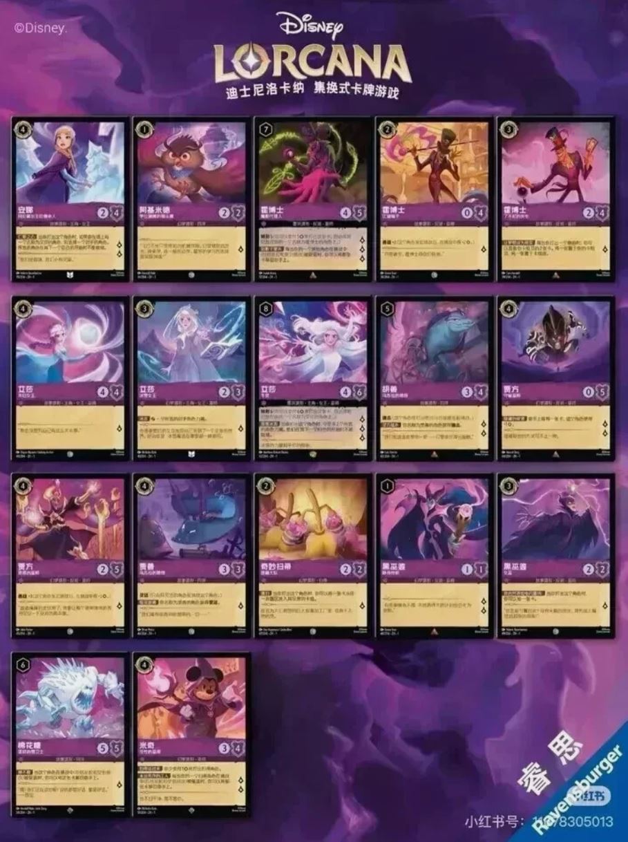 This Lorcana TCG booster box contains the first chapter and features a variety of characters including Elsa, Maleficent, and Mickey Mouse. The Disney Lorcana: The First Chapter (Chinese Light Booster Box) is a unique product configuration released for the mainland China market on January 1, 2025. Often referred to as the "Slim" or "Lightweight" version, it contains more packs but fewer cards per pack compared to standard Western or Chinese "Regular" booster boxes.