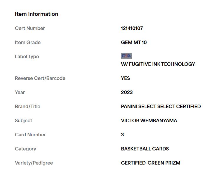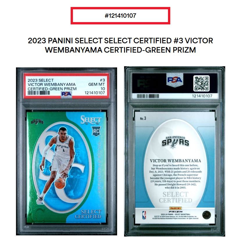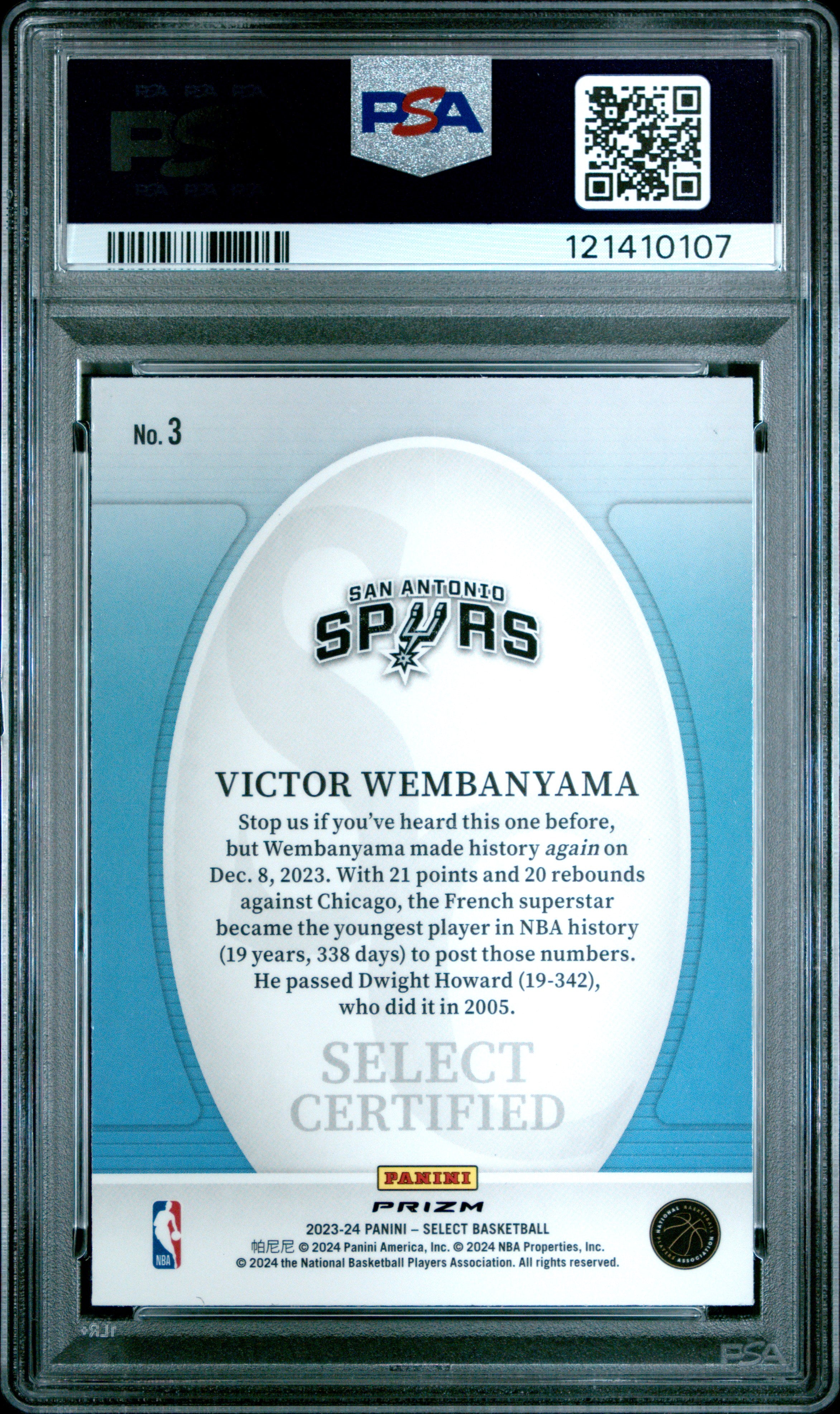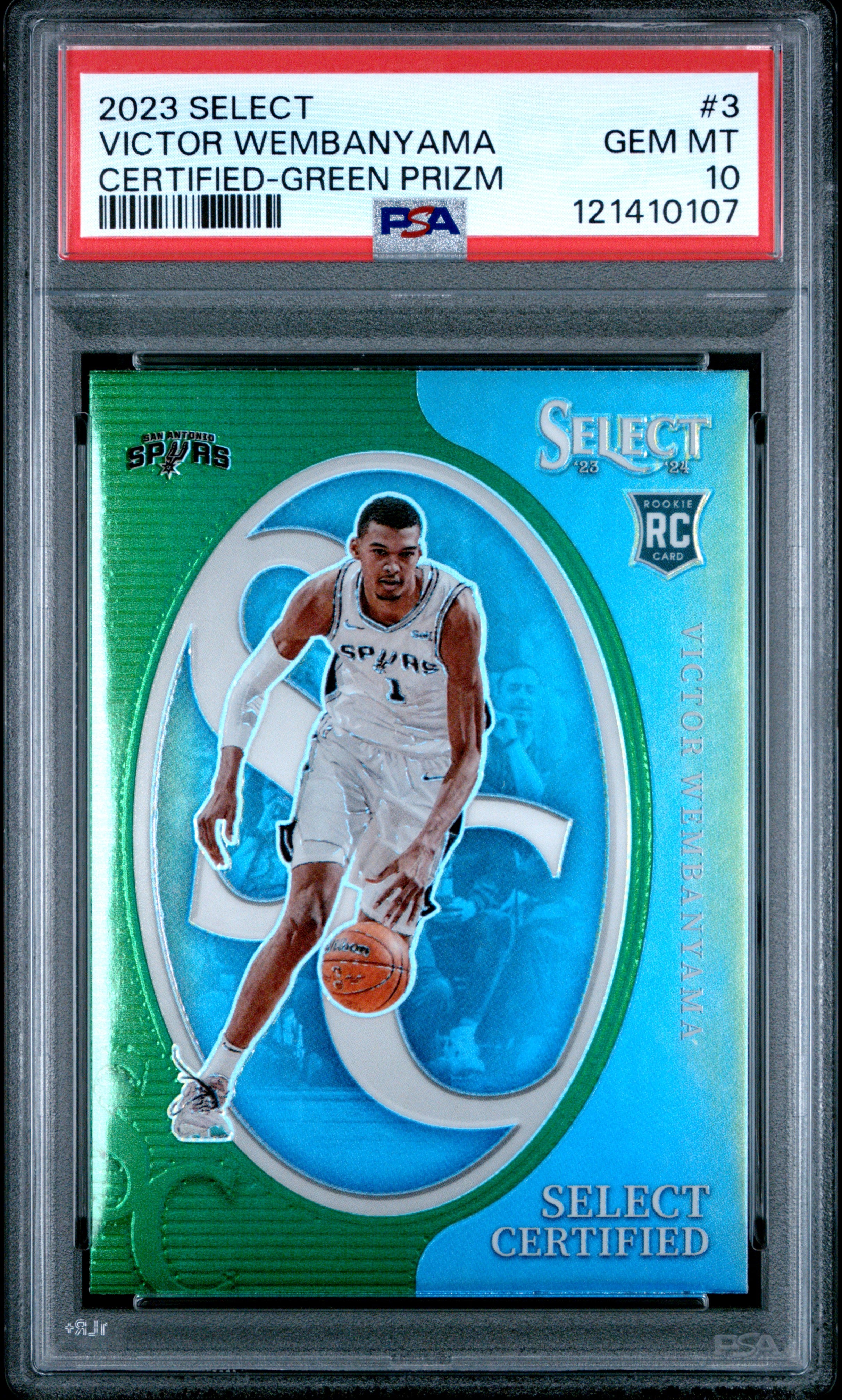 2023-24 Panini Select Victor Wembanyama Select Certified Green Prizm #3 PSA 10