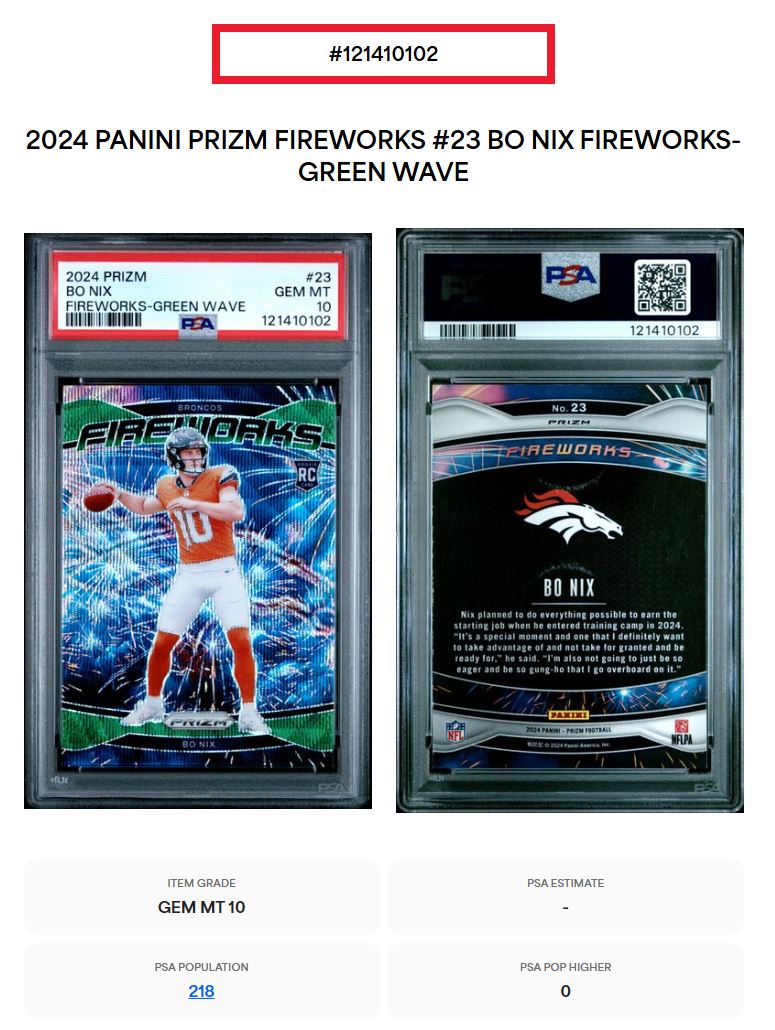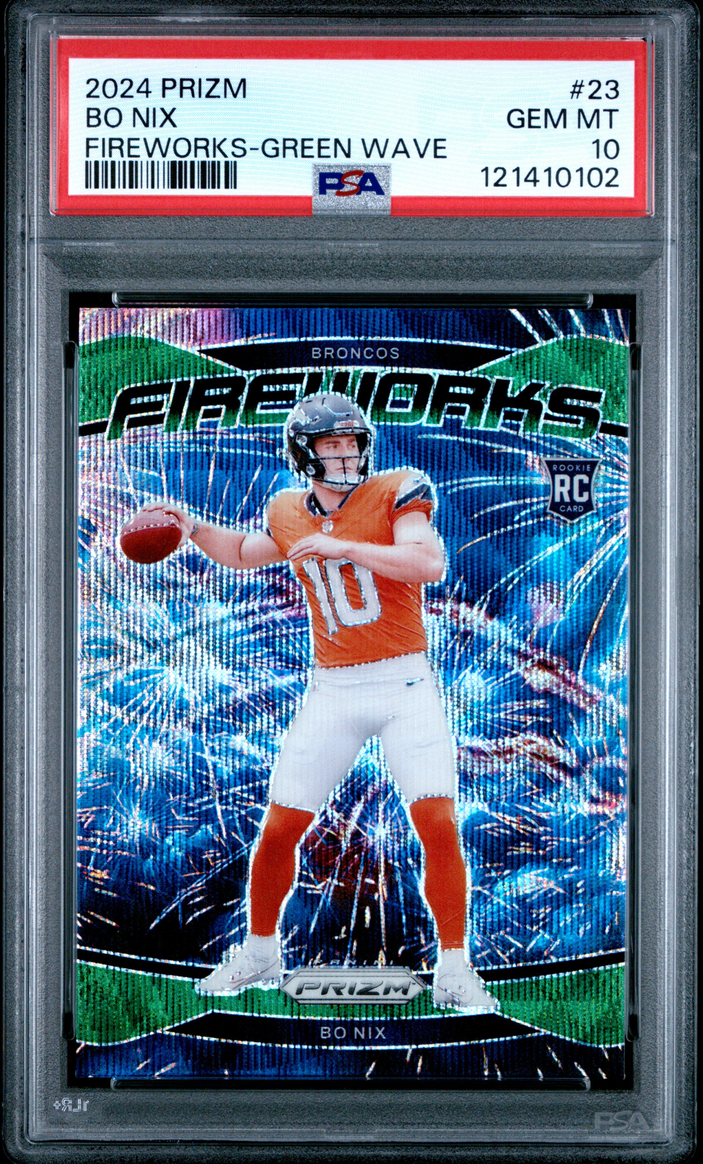 2024 Panini Prizm Bo Nix Fireworks Green Wave #23 PSA 10