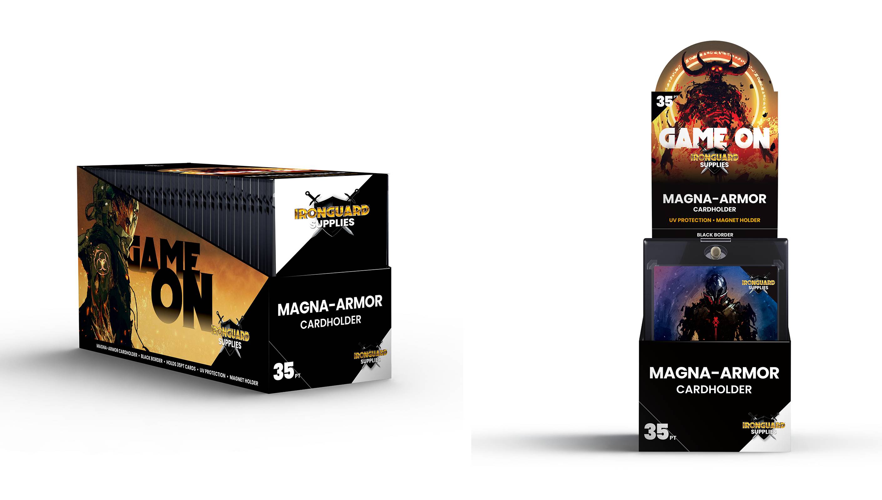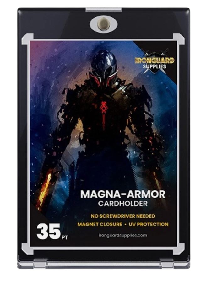 A Magna-Armor magnetic cardholder is already the perfect treatment for special cards, but what about those cards that are a little more special? Make your cards stand out with our black-bordered 35pt cardholders, for those cards that are already standouts in your collection. there are 25 card holders in every display.