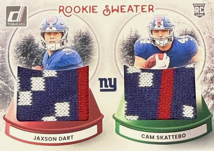 2025 Donruss football returns with the fun of the holidays! Look for your favorite rookies and veterans in a festive style!